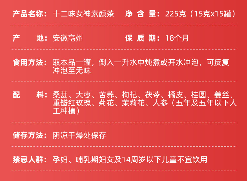 十二味女神素颜茶小罐花茶人参桂圆红枣枸杞茶女神滋养小罐花