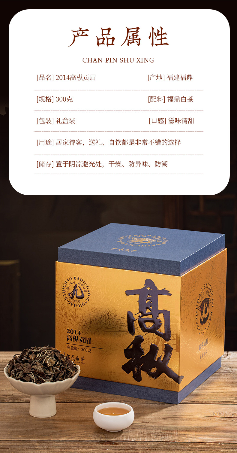2014年高枞贡眉福鼎老白茶 300g 枣香浓郁茶叶礼盒装伴手礼送长辈